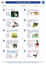 Animals Worksheets for Grade 1 Students | K5 Learning Students learn to identify insects, birds, fish, reptiles, and mammals in these worksheets. Practice animal habitats Students learn to match animals to where they live in these worksheets. The habitats animals live in Students circle the habitats animals live in in these ocean, forest, farm and desert worksheets. Match animals to their homes Animal Math | Worksheet | Education.com Animal Math. It's party time for these pets, but whose birthday is it? This Animal Math worksheet will give your kid practice with simple addition and subtraction. After completing all the equations, your young mathematician will need to write down the letters next to the odd-numbered answers to discover which animal is turning a year older! animals grade 4 worksheets animals grade 4 interactive and downloadable worksheets. Advanced search. x. Advanced search. ... Search results: animals grade 4 . Order results: Comparatives by nuria08: Farm animal listening by veronicarecchia: Wild animals wordsearch by LisbyRamirez: My pet by letyhs: My daily routine ... Class 4 science printable worksheets for Animal Life A. A kind of snake B. A kind of bird C. Animals who live their life in water and on land D. Animals who fly and walk on earth What do scavengers eat? A. Dead animals killed by other predators. B. Dead animals they kill them selves. C. Salt water. D. Fresh flowers. What are warm-blooded animals? A. Animals whose blood temperature is always warm